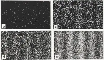 Aşağıda elektronlarla yapılan gerçek bir çift yarık deneyinin görüntüsünü görüyorsunuz. Her bir kare, daha fazla elektron gönderildikçe ikinci duvarda oluşan deseni gösteriyor. Sonuçta, şeritli bir girişim deseni ortaya çıkıyor.”