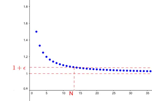 Genel matematik dilinde a0, a1, a2, a3,…gerçek sayılardan oluşan bir dizi olsun. Bu dizinin L sınırına yakınsadığı söylenir; çünkü 0’dan büyük her ε için öyle bir N vardır ki n>N olduğunda dizinin an değeri L’den ε kadar küçük bir uzaklık içinde kalır. Bu durum aşağıdaki gibi gösterilir.