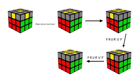 Küpü elinize alın ve sarı merkezi yukarı bakacak şekilde yerleştirin. Sonrasında da F R U R’ U’ F’ algoritmasını uygulayın. Bu algoritmayı bir veya iki kez tekrarladığınızda sarı yüzde bir artı şekli oluşacaktır.