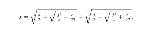 Yine de del Ferro’nun, x³ + cx = d biçimdeki kübik denklemleri çözebildiğini biliyoruz. Bu, özel bir kübik denklem türüdür ve “indirgenmiş kübik denklem” olarak bilinir. Her ne kadar 16. yüzyılın matematikçileri bu denklemleri modern sembollerle ifade etmemiş olsa da, del Ferro bu denklemin köklerinden birinin şu şekilde yazılabileceğini göstermiştir: