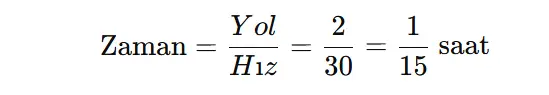 Bu durumda, yol 2 kilometre, ortalama hız 30 km/sa olduğuna göre: