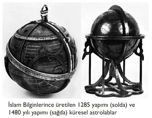 Yunanlıların keşifleri “Karanlık Çağlar” ve eski Yunanlıların ve Romalıların yazılarının kaybolmasıyla da ölmedi. Bazı ortaçağ bilim insanları dünyanın düz olduğunu düşünmelerine rağmen, çoğu Platon ve Aristoteles’i okumuştu. Ve dünyanın yuvarlak olduğuna dair kanıtlarını kabul etmişti. İslam bilginleri, yeryüzünün küre biçiminde olduğunu biliyordu. Bu nedenle astrolablar tepsi biçiminde değil küre biçiminde yapılmıştı.