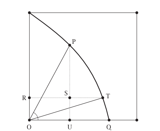 Şekilde ∠POQ açısını ele alalım. P noktasından OQ doğrultusuna bir dik indirir ve PU doğru parçasını elde ederiz. Bu doğru parçasını S noktasında üç eşit parçaya böleriz. S’den geçen yatay doğruyu çizip R ve T noktalarını belirleriz. Son olarak O ile T’yi birleştiririz. Elde edilen ∠TOQ açısı, başlangıçtaki ∠POQ açısının tam olarak üçte birine eşittir.