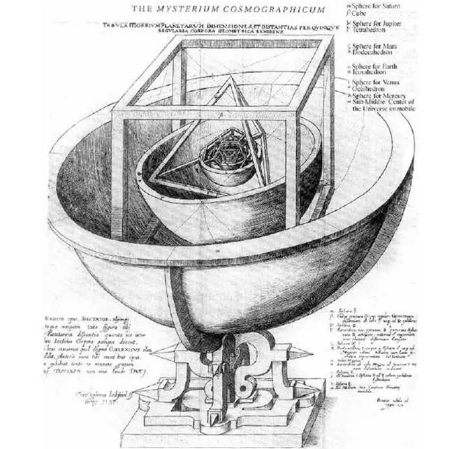 Kitabında, beş Platonik katının her birini bir küre içine yerleştirip bu küreleri iç içe geçiren bir evren modeli tasarladı. Her katman, o dönemde bilinen gezegenlerin Güneş çevresindeki yörüngelerine karşılık geliyordu.