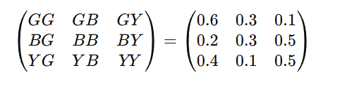 - GGY yolunun olasılığı, GG olasılığı ile GY olasılığının çarpımıdır: 0.6 × 0.1 = 0.06