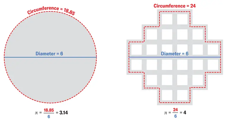 Günlük hayatta çemberlerin kusursuz biçimde yuvarlak olduğunu varsayarız. Ancak matematikte çember, merkezden eşit uzaklıktaki noktalar kümesidir. Düz, iki boyutlu bir dünyada bu şekil yuvarlaktır. Fakat uzaklık tanımı değişirse işler ve dolayısıyla pi sayısı da değişir. Bu yüzden “pi her yerde aynıdır” ifadesi, yalnızca düz (Öklidyen) geometri için geçerlidir.