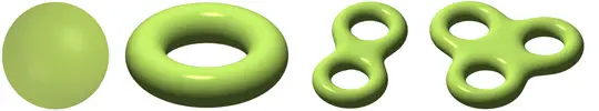 Eğer bir yüzey, bu tür dönüşümlerle başka bir yüzeye dönüştürülebiliyorsa, bu iki yüzey topolojik olarak eşdeğer kabul edilir. Bu perspektifle bakıldığında, çoğu yüzey aslında birkaç temel örneğe indirgenir. Bunlardan biri küredir. Diğerleri ise deliği olan simit benzeri yüzeylerdir: bir delikli simit, iki delikli simit, üç delikli simit… Bu şekilde artarak devam eder.